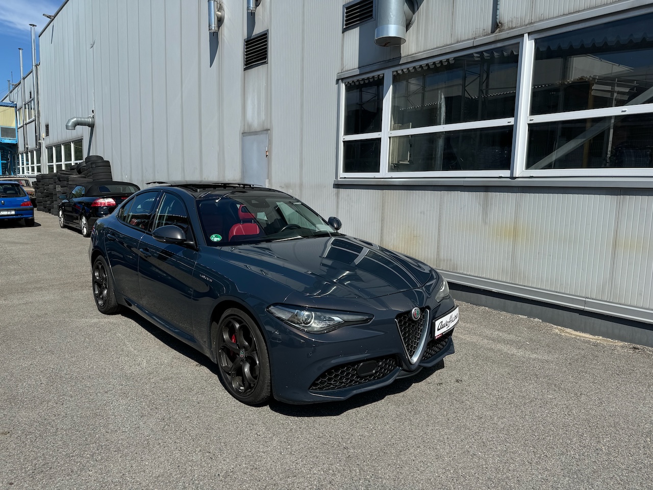 Alfa Romeo Giulia Veloce 2.2JTD Q4 210Hp, pilnpiedziņa, Harman/Kardon mūzika, stikla jumts, pilnā ādas apdare, elektriski regulējami komforta sēdekļi ar atmiņu un apsildi, apsildāma stūre, R19 dažādu platumu diski, lielās Brembo bremzes, "Alfa Connect" multimediju sistēma ar Bluetooth, pilnais 7" instrumentu panelis, ksenona gaismas, parkošanās sensori un atpakaļskata kamera. Lietus un tumsas sensors, tālo gaismu asistents, kruizs, elektriski nolokāmi sānu spoguļi ar aklās zonas brīdināšanas sistēmu, nolaižami aizmugurējie sēdekļi u.c.