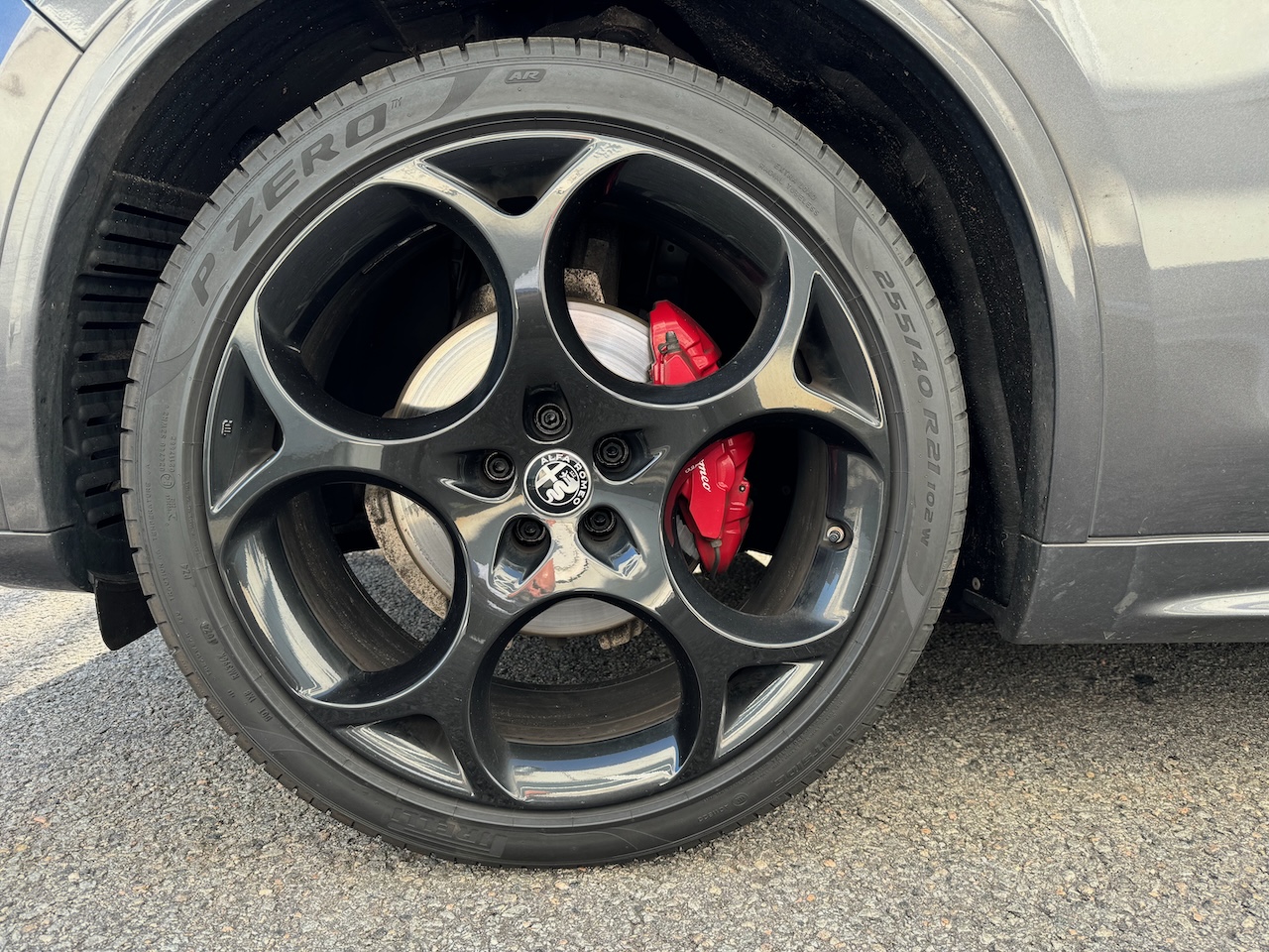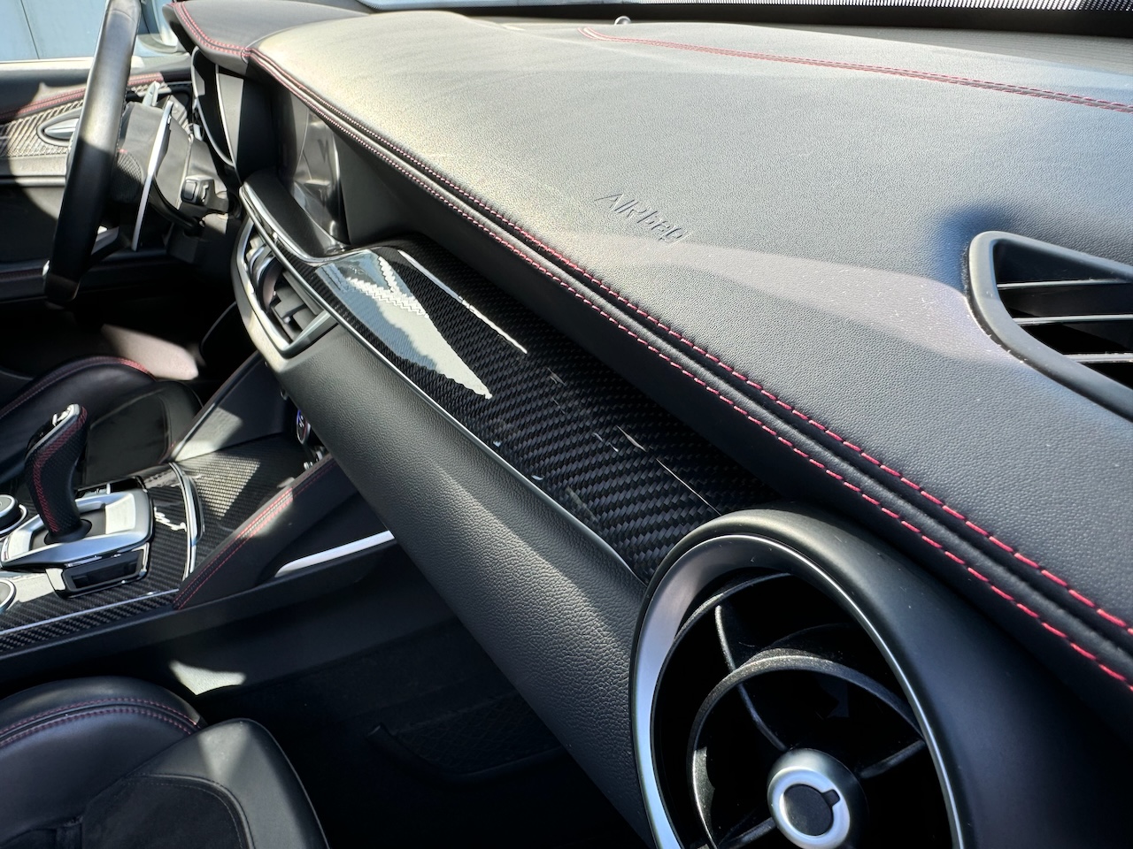 Šis Stelvio ir komplektēts ar ļoti reti sastopamo "Veloce Ti" paku, kas ir absolūta top versija, kurā apvienota elegance un ātrums. Adaptīvā balstiekārta, Quadrifoglio stila apdare ar alkantaru un karbonu, R21 riteņi un aerodinamiskā paka, Q4 sistēma papildīnāta ar mehānisku pašbloķējošo aizmugures diferenciāli (LSD).