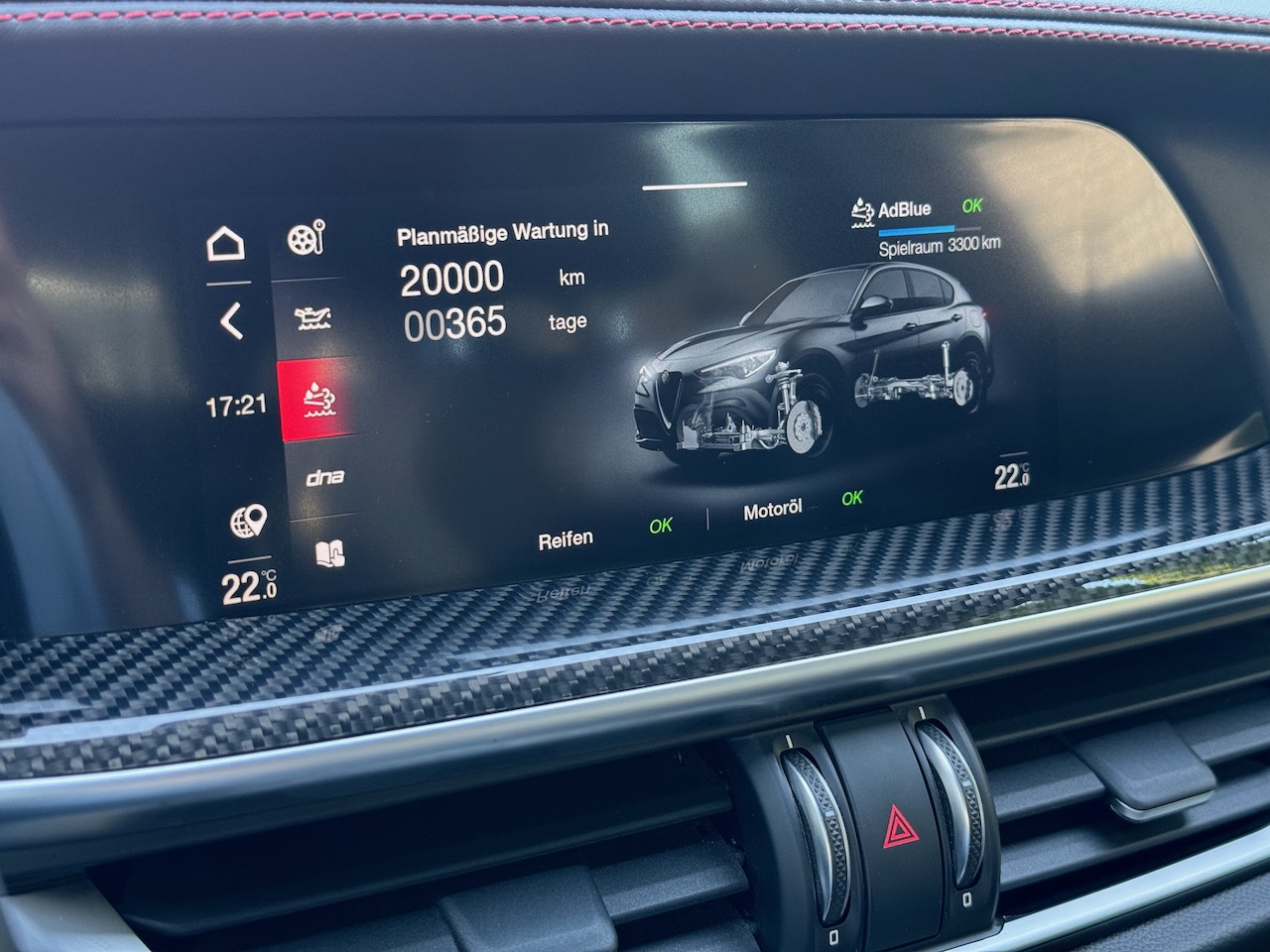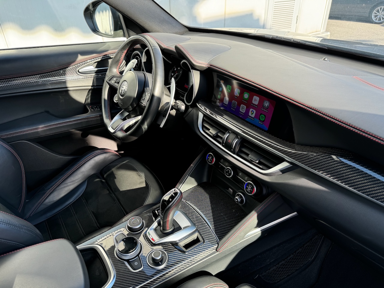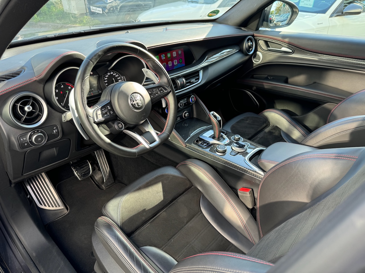 Alfa Romeo Stelvio 2.2JTD Veloce Ti 210HP, Q4 pilnpiedziņa, jaunais MY21 modelis ar skārienekrānu, Carplay un bezvadu lādētāju. Quadrifoglio stila interjers ar alkantaru un karbonu, sēdekļu un stūres apsilde, Harman/Kardon mūzika ar Bluetooth, parkošanās sensori ar atpakaļskata kameru, adaptīvās ksenona gaismas. MY21 auto aprīkojumā ir ne tikai adaptīvā kruiza kontrole, bet arī sastrēgumā braukšanas asistents, joslā turēšanās sistēma un noguruma brīdinājums.