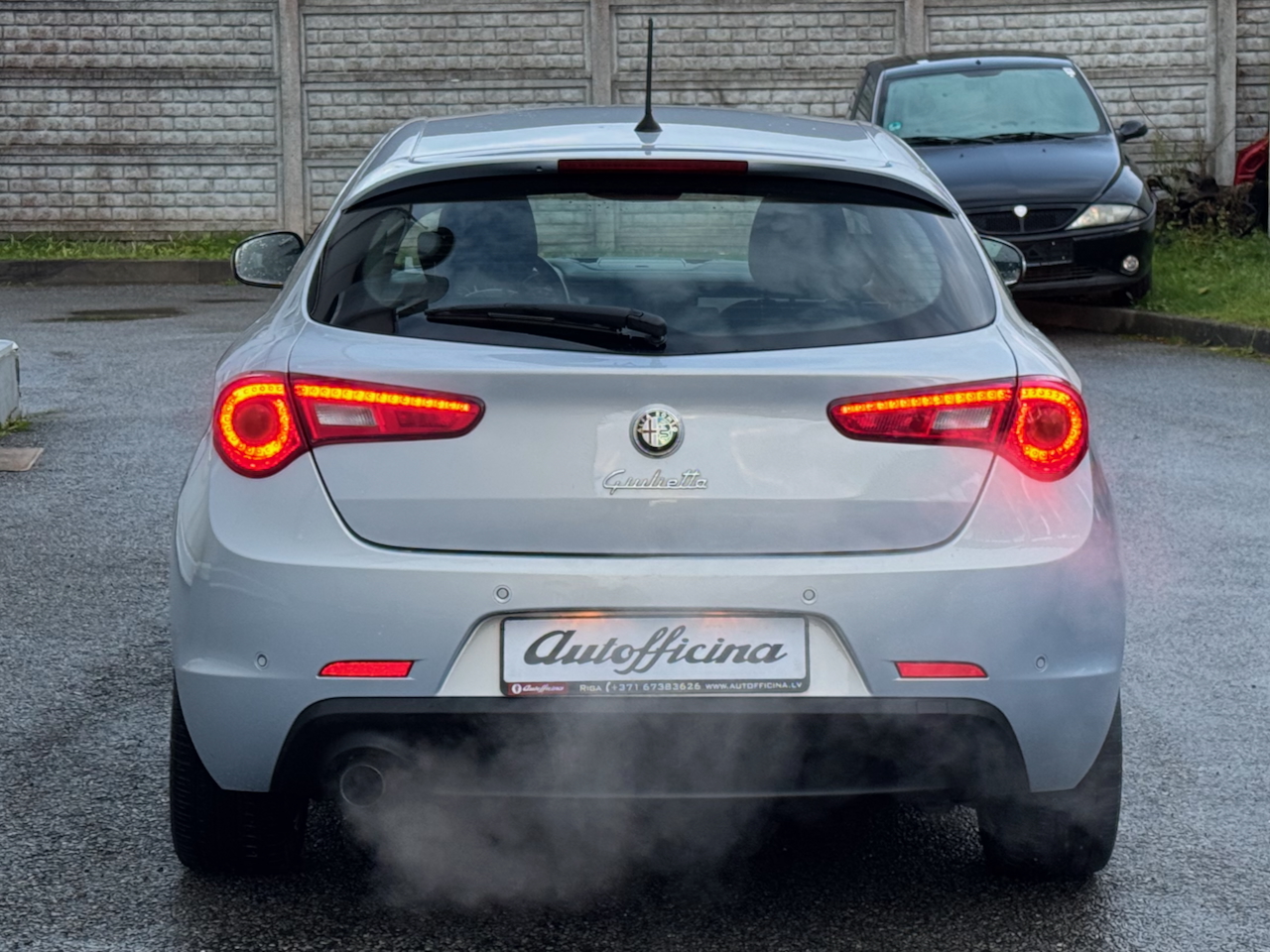 Alfa Romeo Giulietta 1.4 Turbo Benzina, jaunais modelis īpašajā "Bianco Lunare" krāsā, "Distinctive" aprīkojuma līmenis, skārienjutīgā multimediju sistēma ar bluetooth audio. Kruiza kontrole, klimate kontrole, automātiskās gaismas, parkošanās sensori u.c.