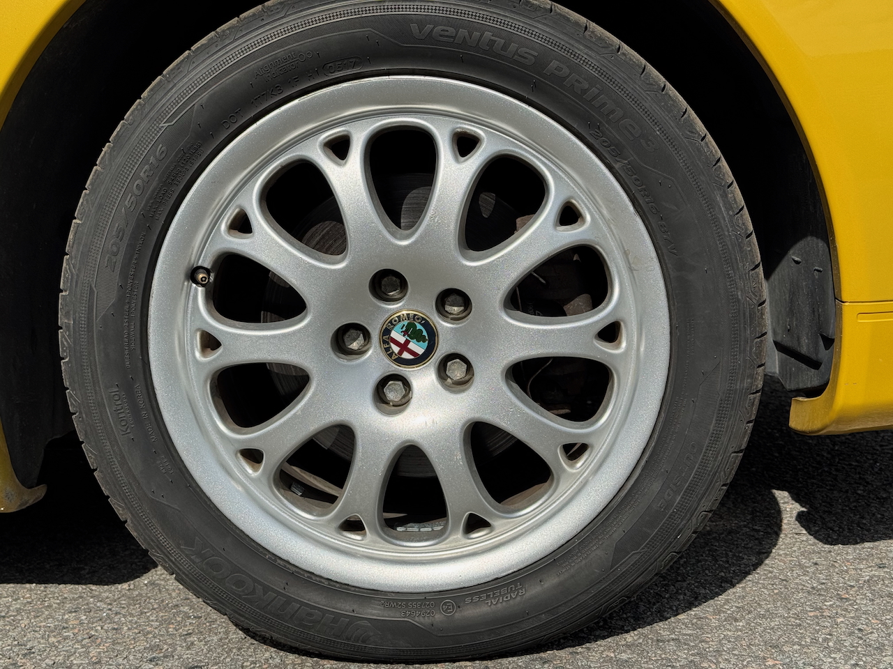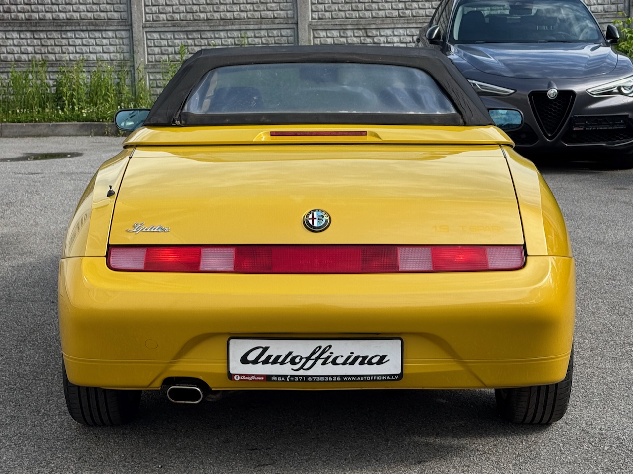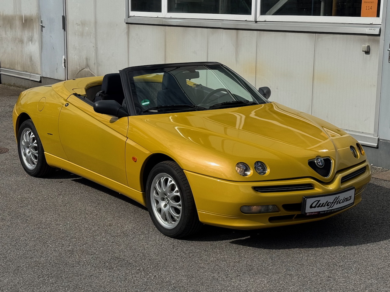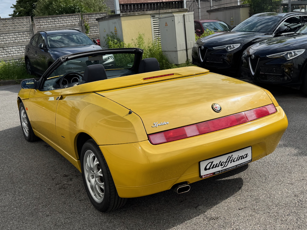 Alfa Romeo Spider 1.8 16V, 144zs Twin Spark motors, atjaunotais otrās paaudzes modelis īpašajā "Giallo Zoe" dzeltenajā krāsā aprīkots ar elektriski vadāmu jumtu.
