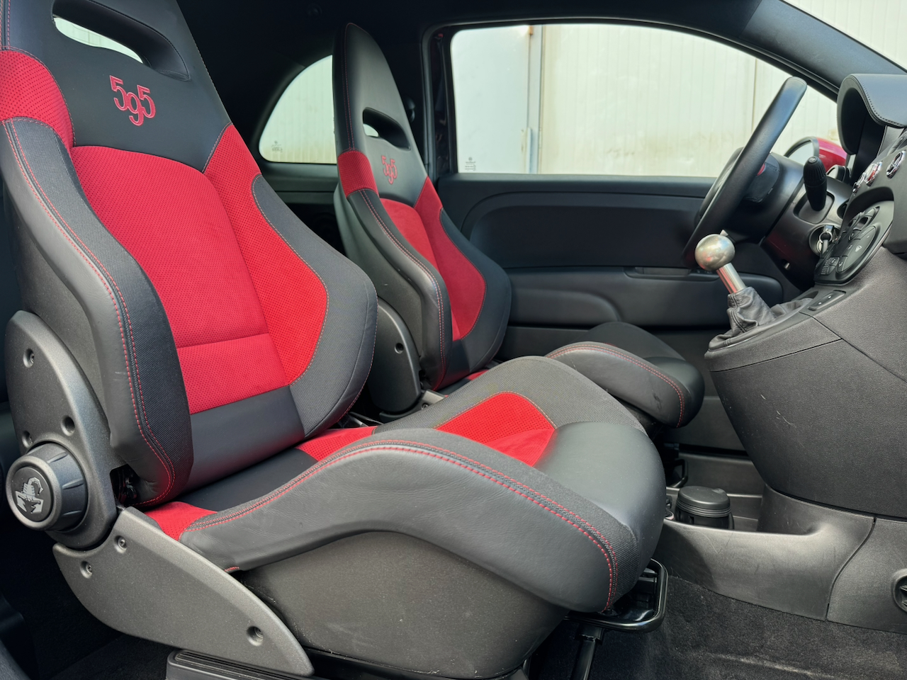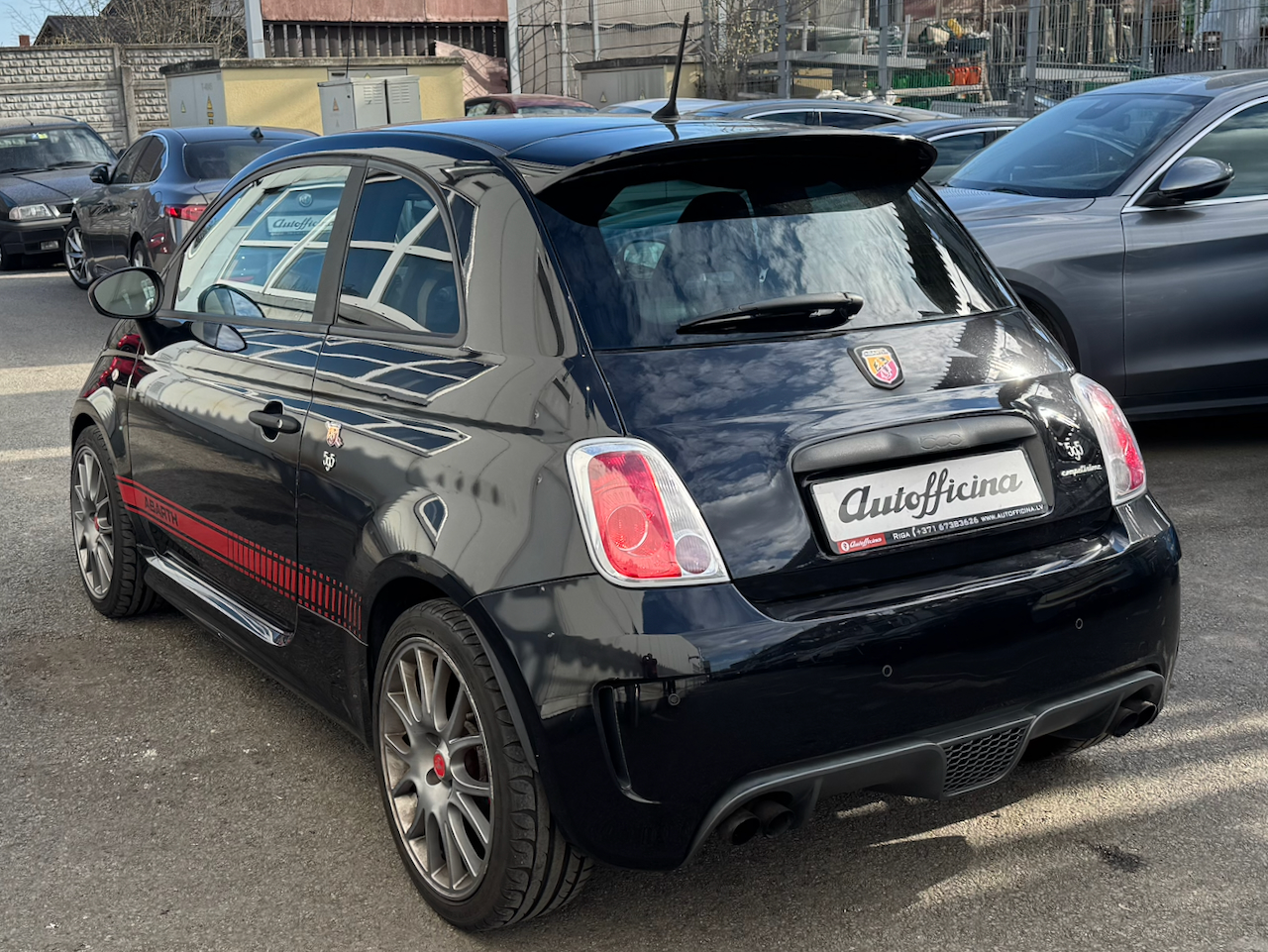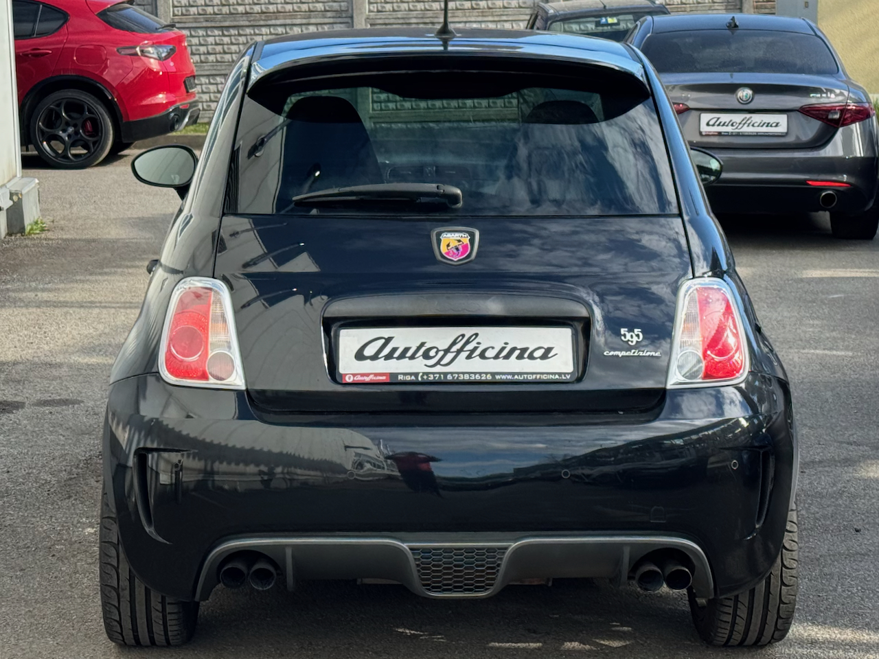 Abarth 595 Competizione - maksimāla adrenalīna deva kompaktā formātā. 1.4 T-Jet motors ar Garrett turbīnu attīsta 180 zirgaspēkus un nodrošina 0-100km sprintu 6.7 sekundēs. "Record Monza" aktīvā izplūdes sistēma, "Sabelt" sporta sēdekļi, "Brembo" 305mm bremžu sistēma, Koni FSD amortizācija. Konkrētais eksemplārs aprīkots arī ar klimata kontroli, ksenona lukturiem un aizmugurējiem parkošanās sensoriem.