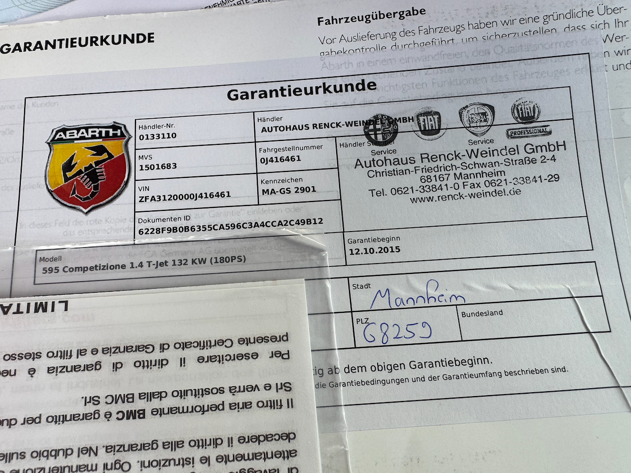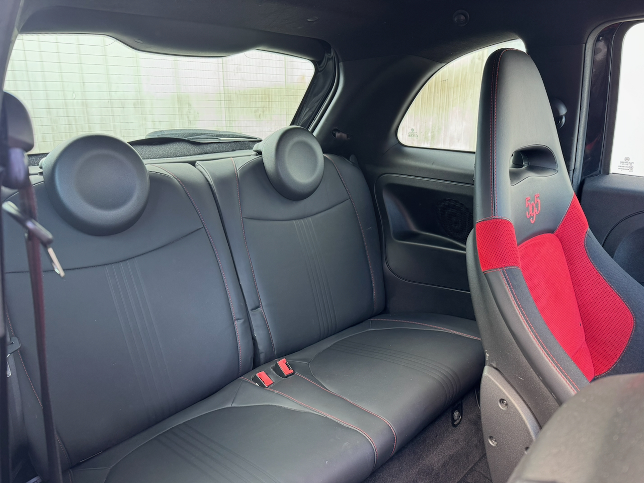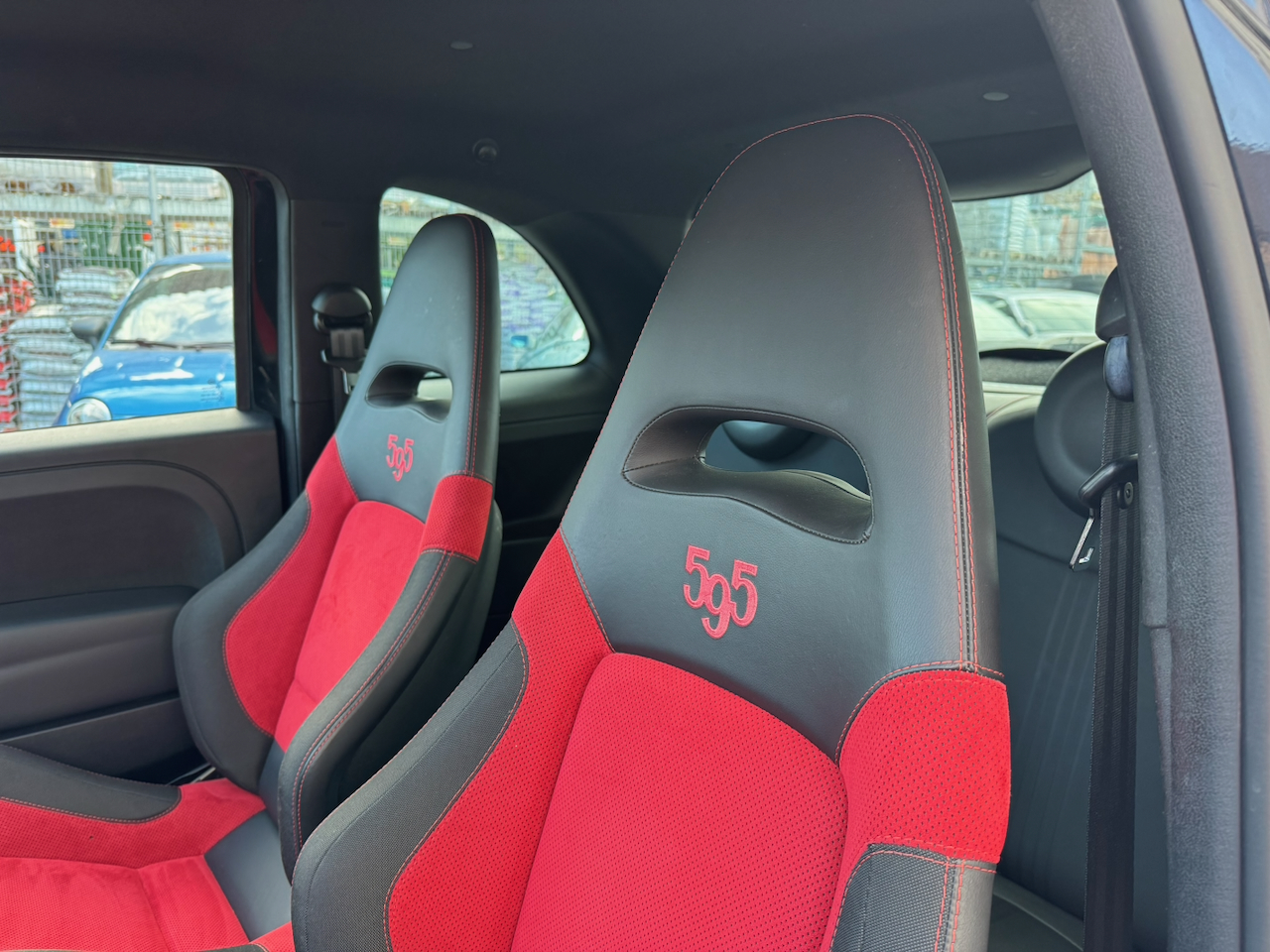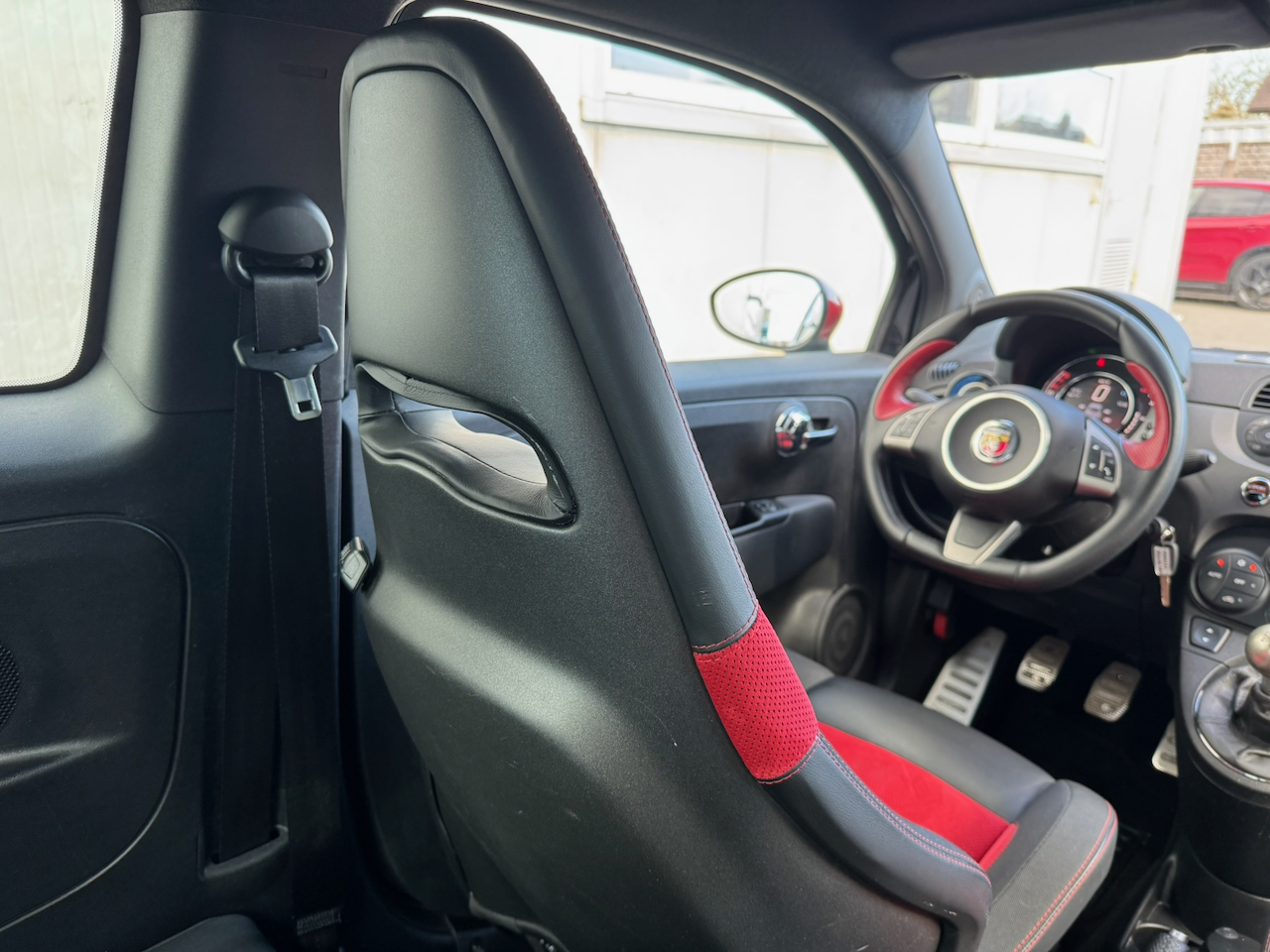 Abarth 595 Competizione - maksimāla adrenalīna deva kompaktā formātā. 1.4 T-Jet motors ar Garrett turbīnu attīsta 180 zirgaspēkus un nodrošina 0-100km sprintu 6.7 sekundēs. "Record Monza" aktīvā izplūdes sistēma, "Sabelt" sporta sēdekļi, "Brembo" 305mm bremžu sistēma, Koni FSD amortizācija. Konkrētais eksemplārs aprīkots arī ar klimata kontroli, ksenona lukturiem un aizmugurējiem parkošanās sensoriem.