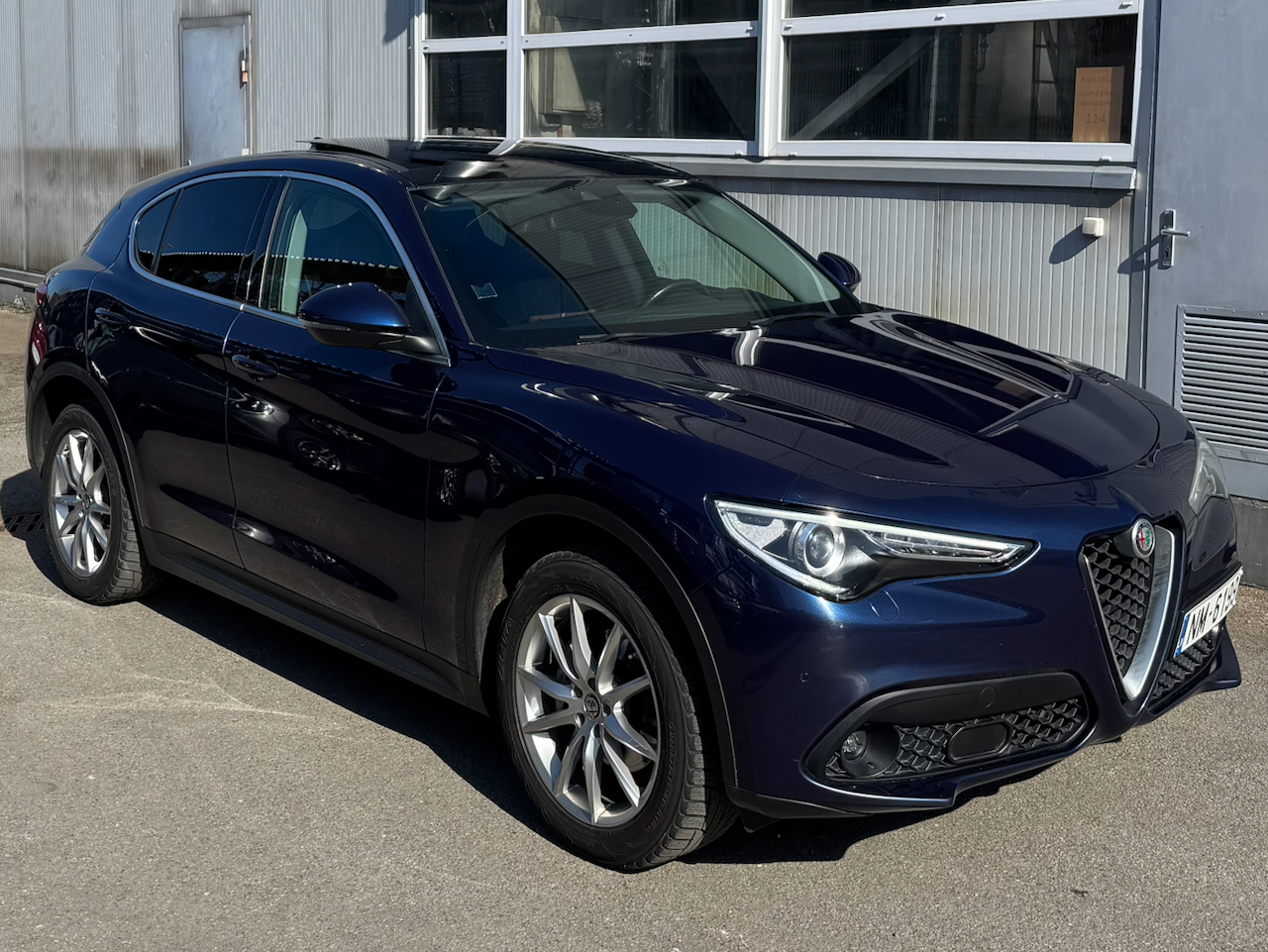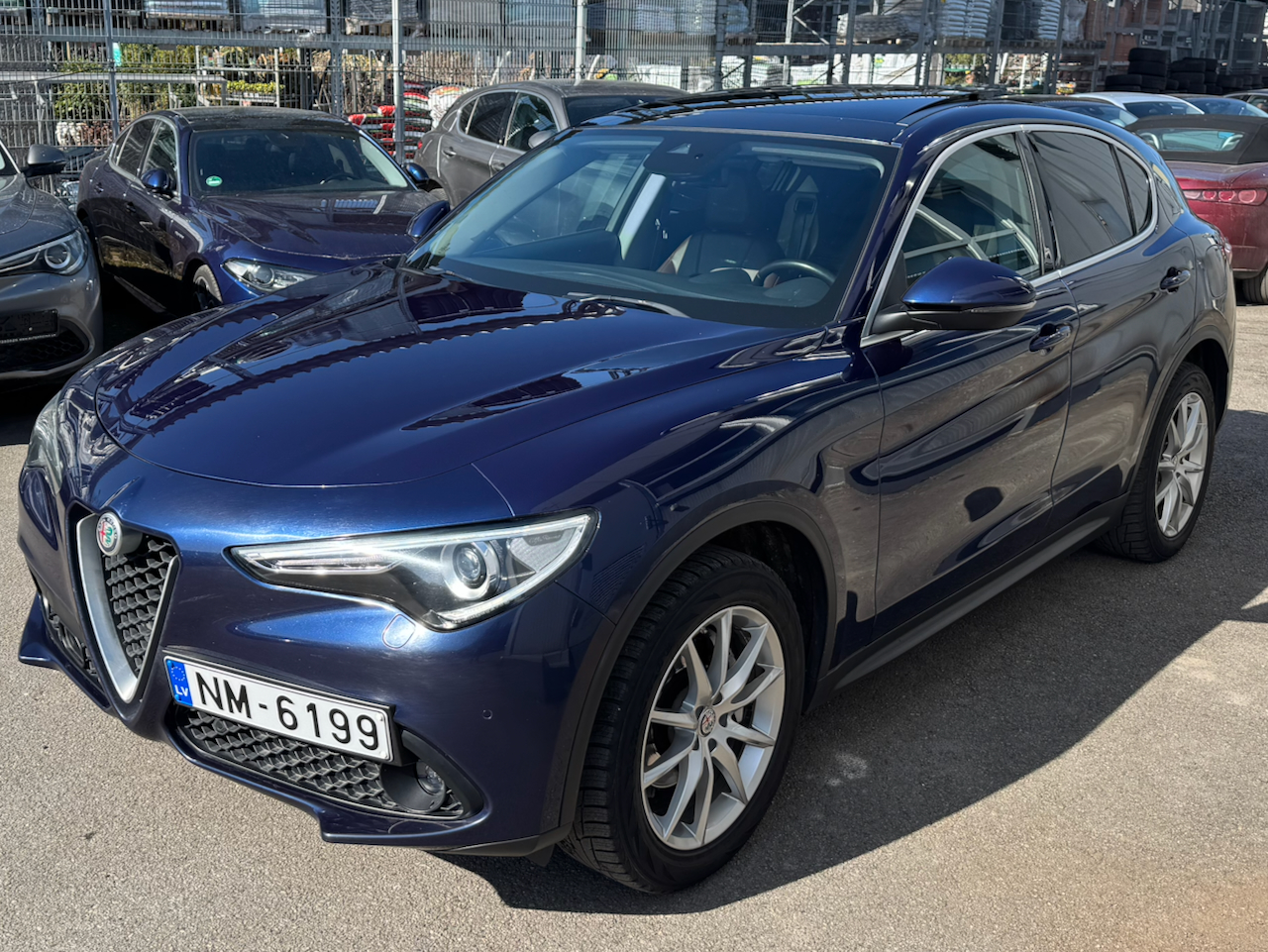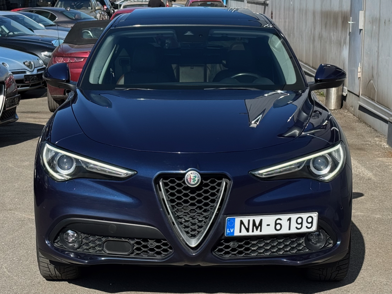 Alfa Romeo Stelvio 2.2 JTD Q4 210HP, Q4 pilnpiedziņa, "Super" aprīkojums, "Blu Montecarlo" krāsā, elektriski regulējami ādas sēdekļi ar atmiņu, elektriski darbināms bagāžnieka vāks, R19 riteņi, ksenona gaismas, parkošanās sensori ar atpakaļskata kameru. Lietus un tumsas sensors, elektriski nolokāmi sānu spoguļi, automātiskās gaismas, aklā zona, avārijas bremzēšana, joslu asistents u.c.