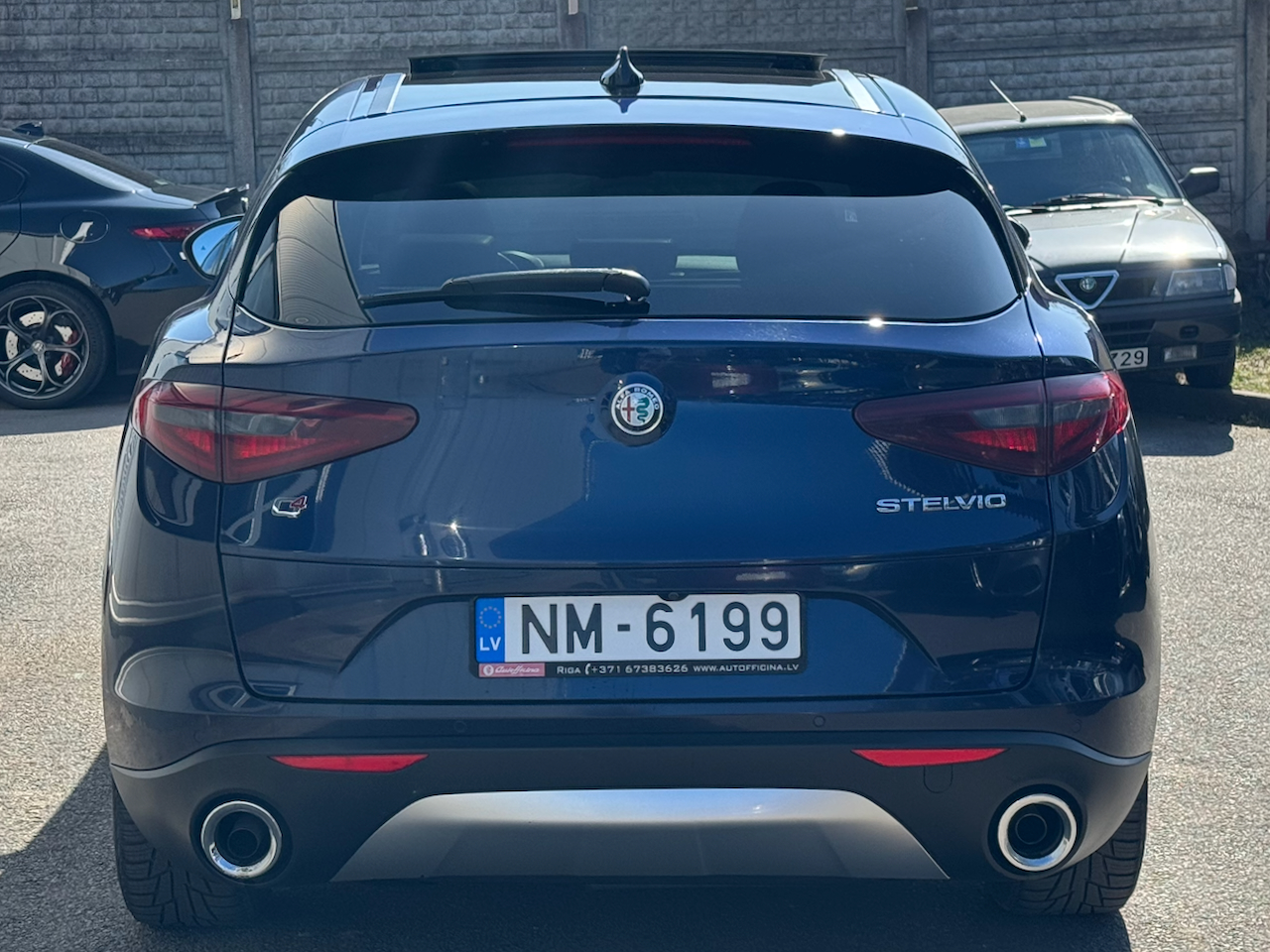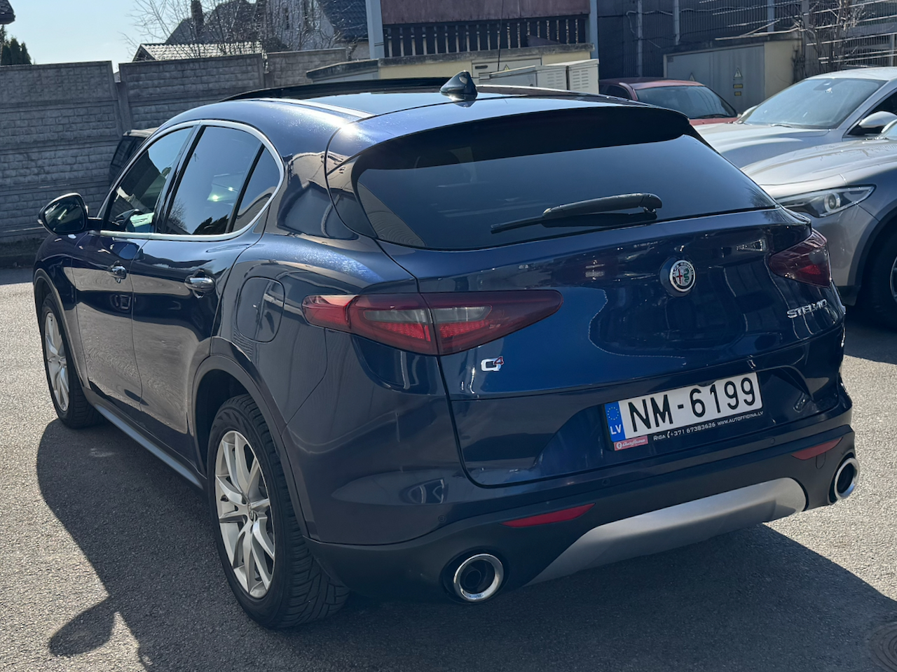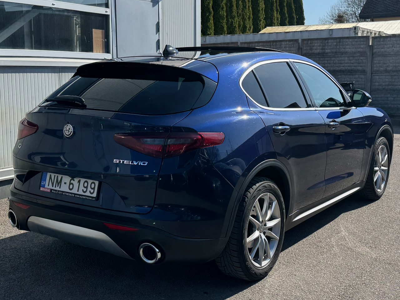 Alfa Romeo Stelvio 2.2 JTD Q4 210HP, Q4 pilnpiedziņa, "Super" aprīkojums, "Blu Montecarlo" krāsā, elektriski regulējami ādas sēdekļi ar atmiņu, elektriski darbināms bagāžnieka vāks, R19 riteņi, ksenona gaismas, parkošanās sensori ar atpakaļskata kameru. Lietus un tumsas sensors, elektriski nolokāmi sānu spoguļi, automātiskās gaismas, aklā zona, avārijas bremzēšana, joslu asistents u.c.