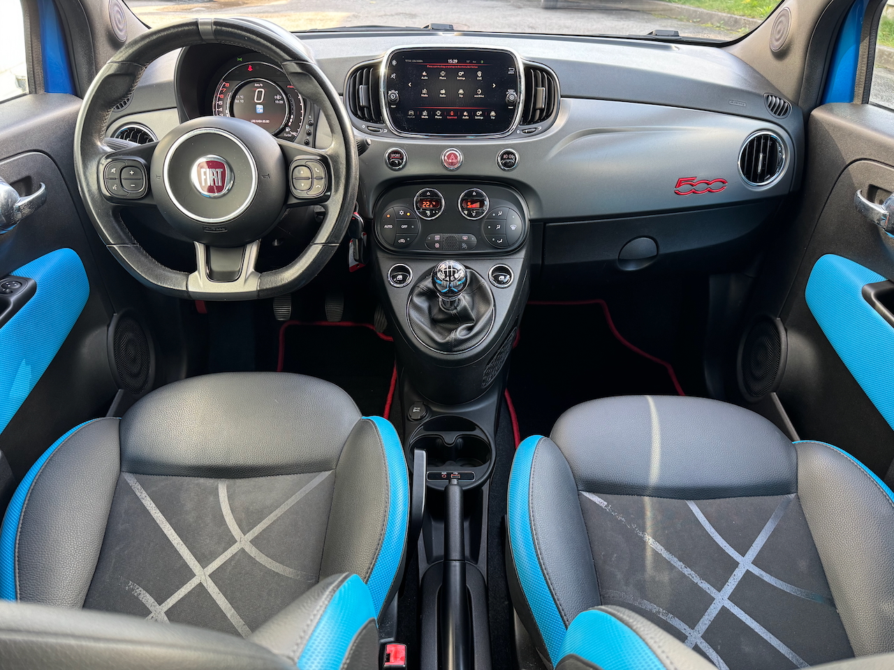 Fiat 500S GT 105HP, 0.9l Turbo motors, jaunais modelis īpašajā "Italia Blue" krāsā, pusādas salons, klimata kontrole, parkošanās sensori, UCONNECT multimediju sistēma ar skārienjutīgo ekrānu un bluetooth audio, riepu spiediena kontrole u.c.