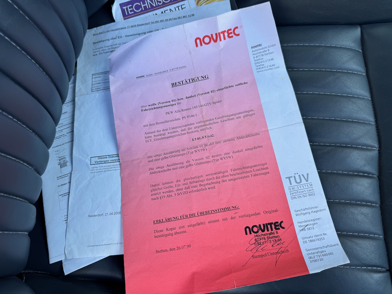Alfa Romeo GTV 3.0 24V, 220zs Busso motors, atjaunotais modelis,  rūpnīcas Aero kit spoileris, R17 "Teledial" diski, Momo ādas salons, "Azzuro Nuvola" metālika, klimatkontrole. KW balstiekārta, Novitec dzidrie virziena rādītāji un Ragazzon izplūde, visam pieejami sertifikāti.