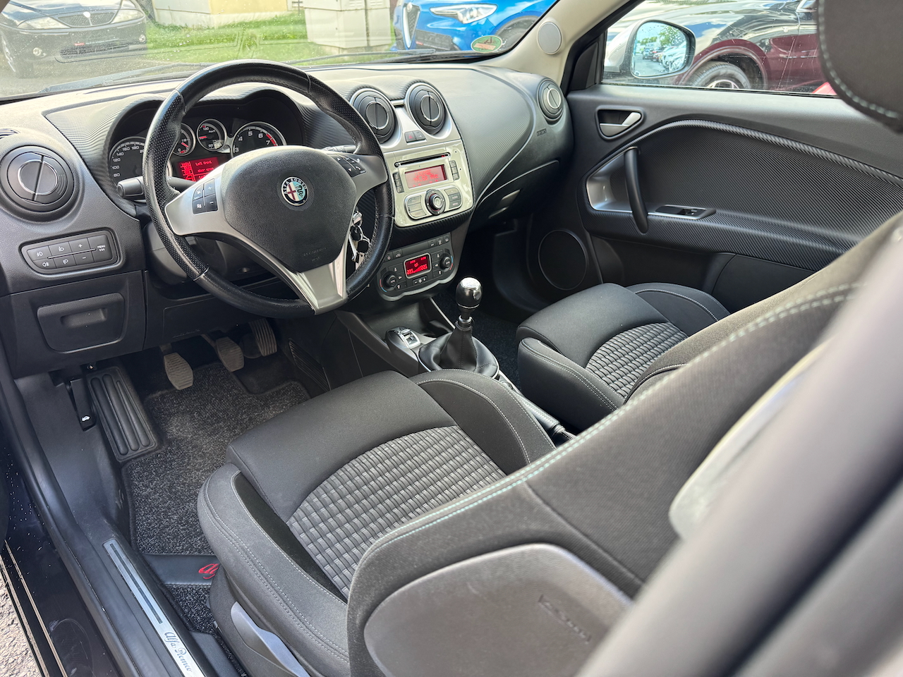 Alfa Romeo MiTo 1.4 16V Turbo 155HP, Brembo bremzes, sportpaka, "Nero Etna" metāliski melnā krāsa ar sarkanu pērli, karbona apdare, R17 8C stila diski, klimata kontrole, iebūvētais Blu&Me handsfree u.c.