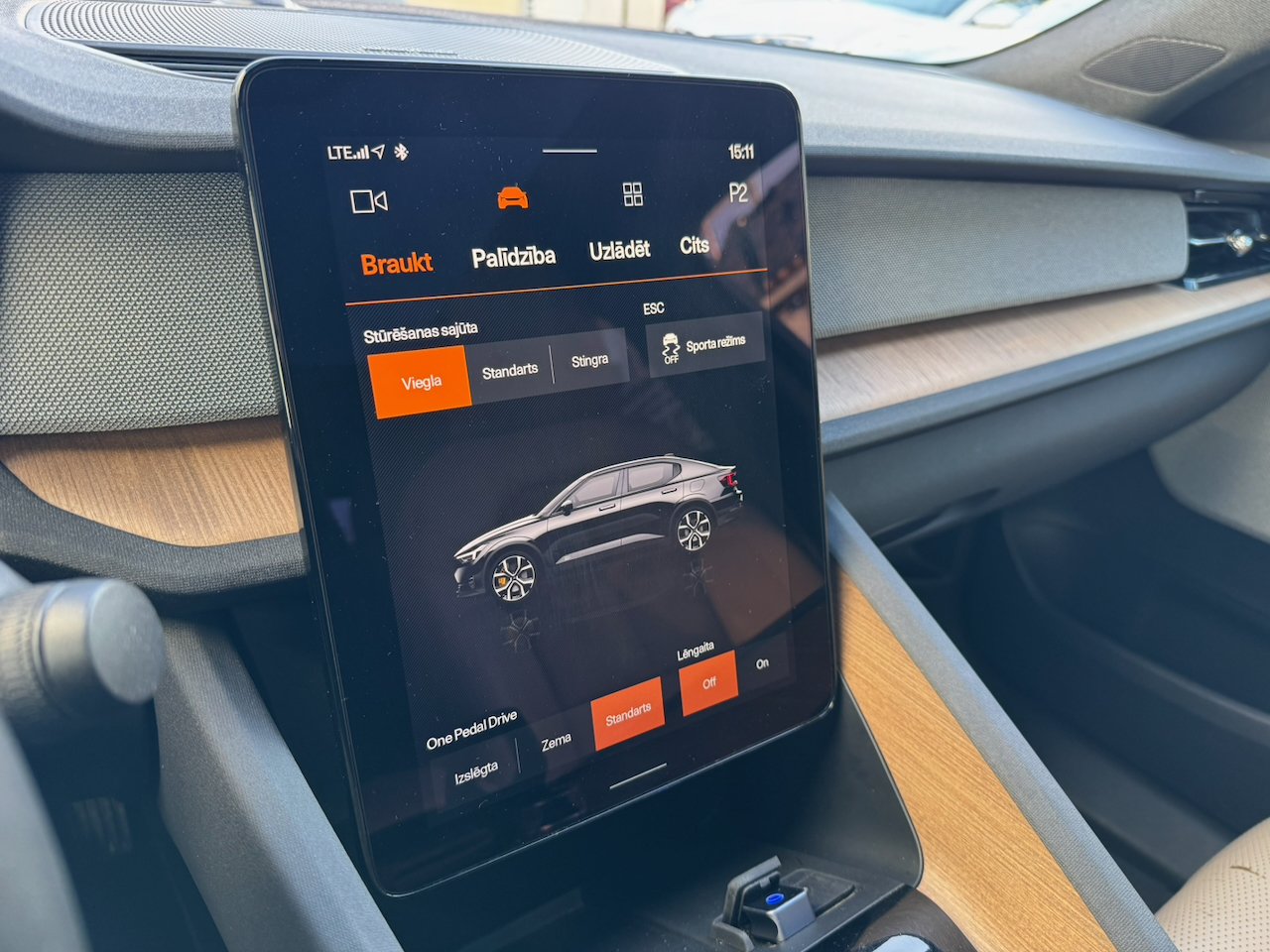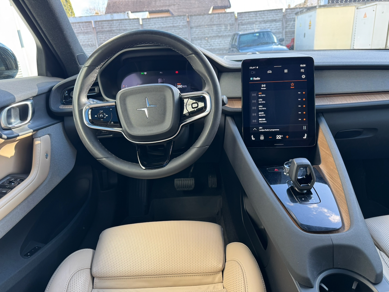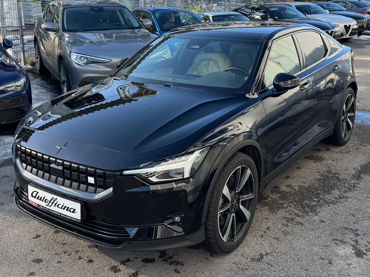 Polestar 2 maksimālā komplektācijā. Long Range (79kWh), AWD (Dual Motor) ar kopējo jaudu 300KW / 408Zs, Pilot un Plus pakas, kā arī Nappa ādas salons ar apsildi un ventilāciju.