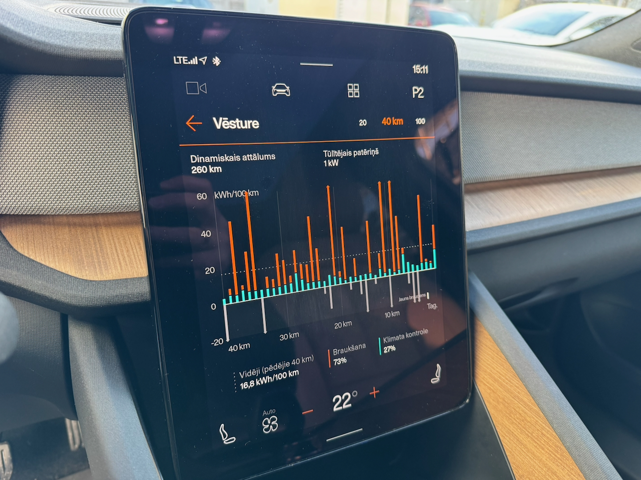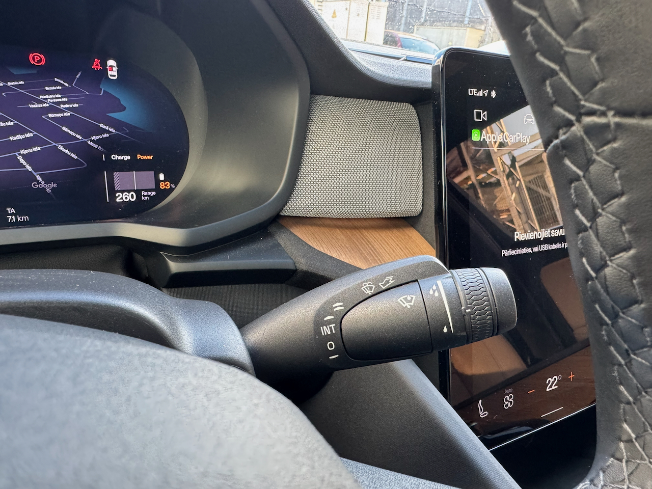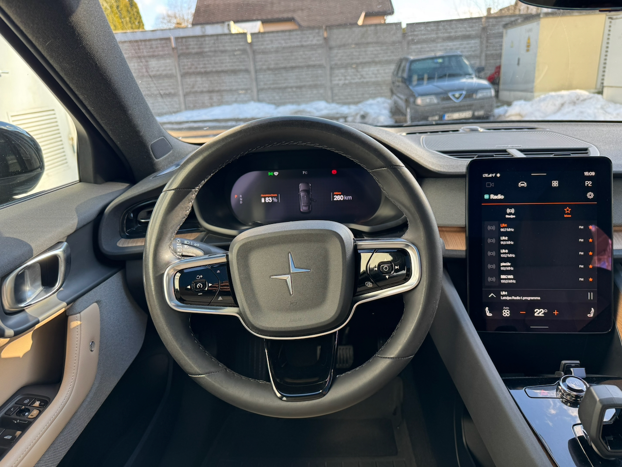 Polestar 2 maksimālā komplektācijā. Long Range (79kWh), AWD (Dual Motor) ar kopējo jaudu 300KW / 408Zs, Pilot un Plus pakas, kā arī Nappa ādas salons ar apsildi un ventilāciju.