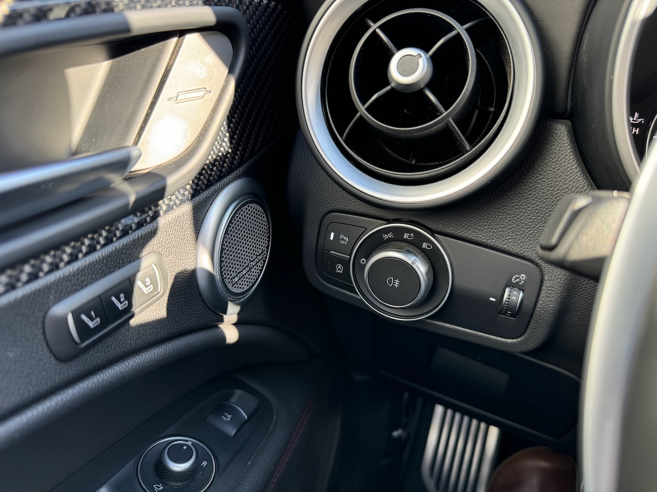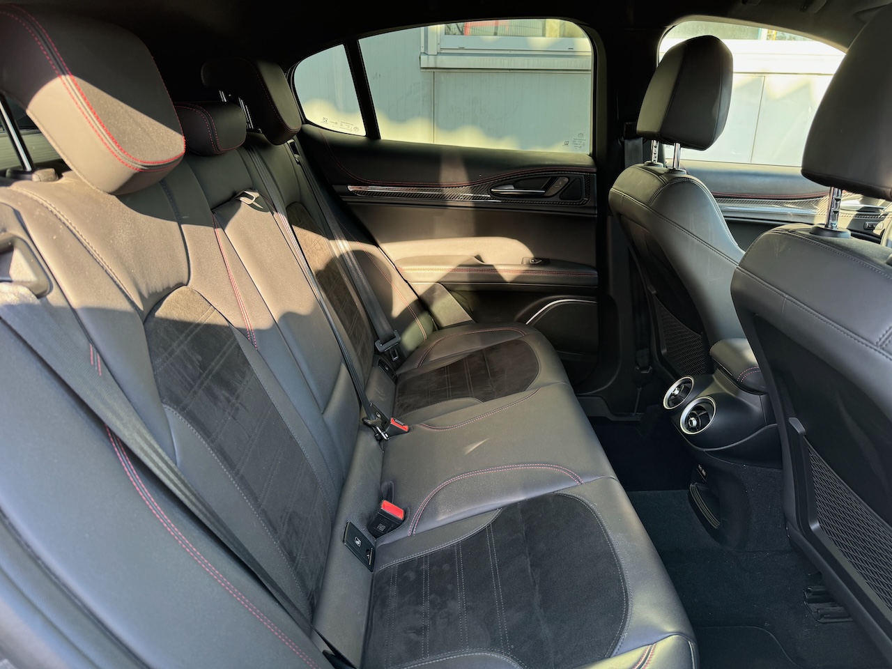 Šis Stelvio ir komplektēts ar ļoti reti sastopamo "Veloce Ti" paku, kas ir absolūta top versija, kurā apvienota elegance un ātrums. Adaptīvā balstiekārta, Quadrifoglio stila apdare ar alkantaru un karbonu, R21 riteņi un aerodinamiskā paka, Q4 sistēma papildīnāta ar mehānisku pašbloķējošo aizmugures diferenciāli (LSD).