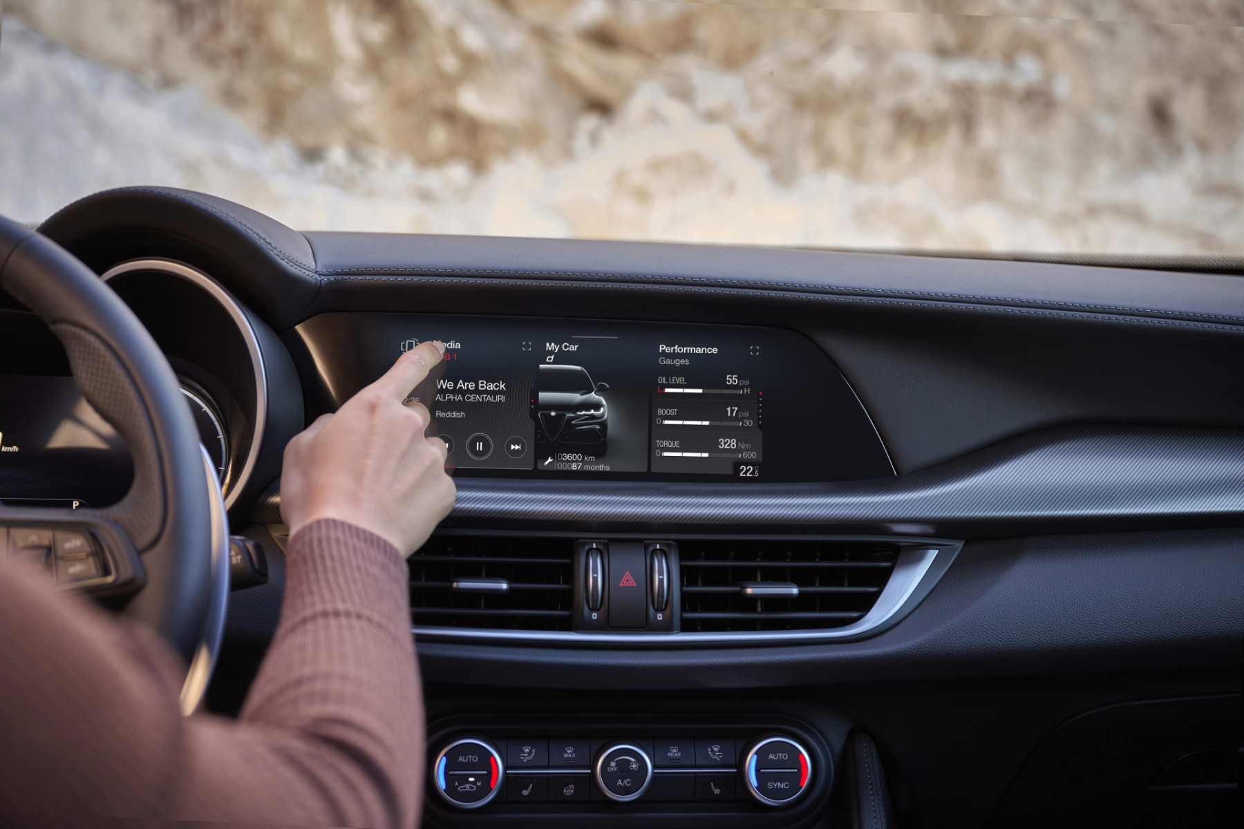 Stelvio ir uzstādītas visas modernās aktīvās un pasīvās drošības sistēmas: joslas saglabāšanas palīgsistēma, avārijas bremzēšanas asistents, adaptīvie lukturi, aktīvā kruīza kontrole un tālo gaismu asistents. Ir pieejams viss, ko sagaidām no mūsdienu auto. Jāņem vērā, ka Apple CarPlay un Android Auto ir pieejami tikai modeļiem, sākot ar 2018. gadu, taču vecākiem auto tagad ir pieejami pēcpārdošanas risinājumi.