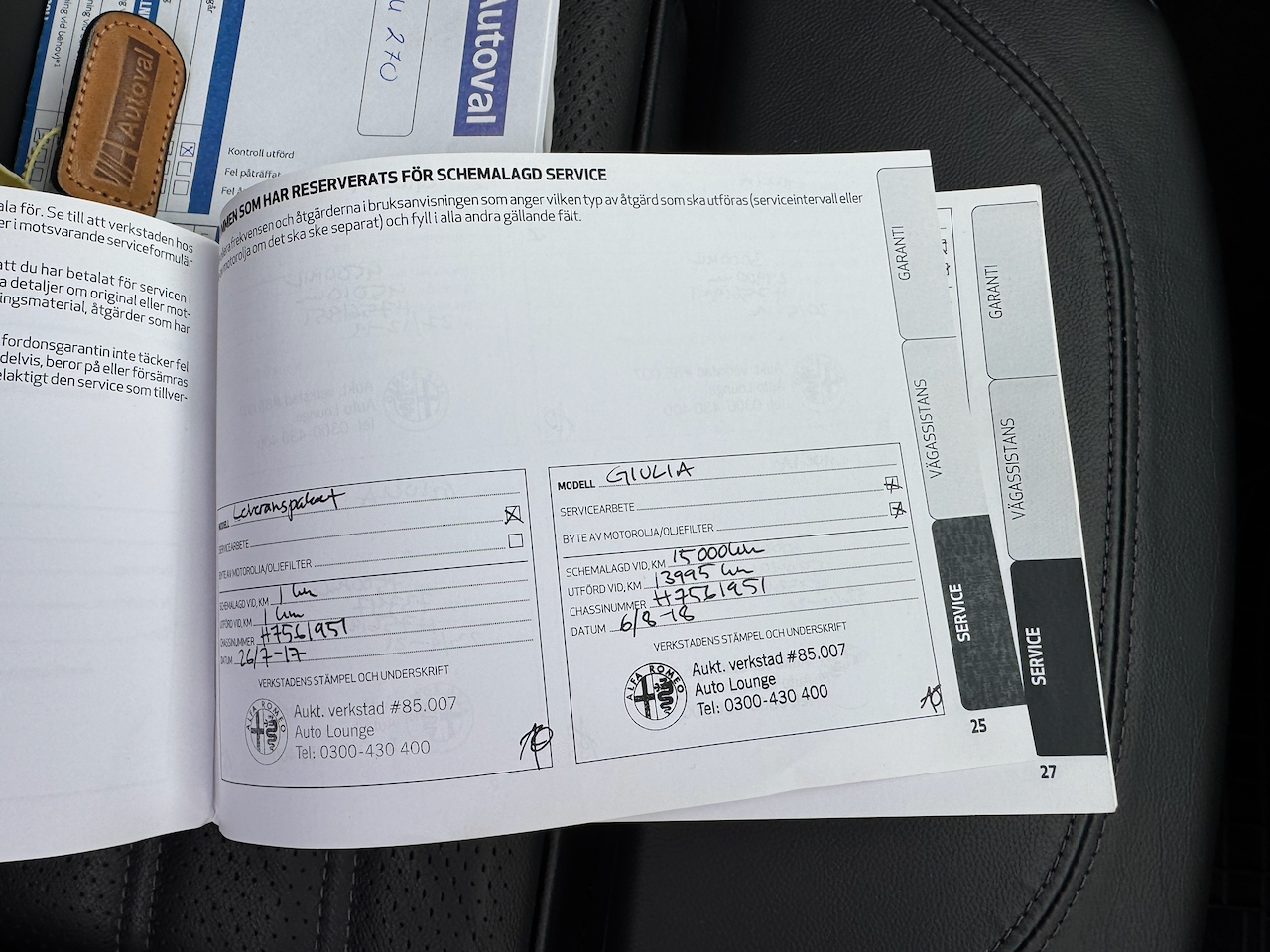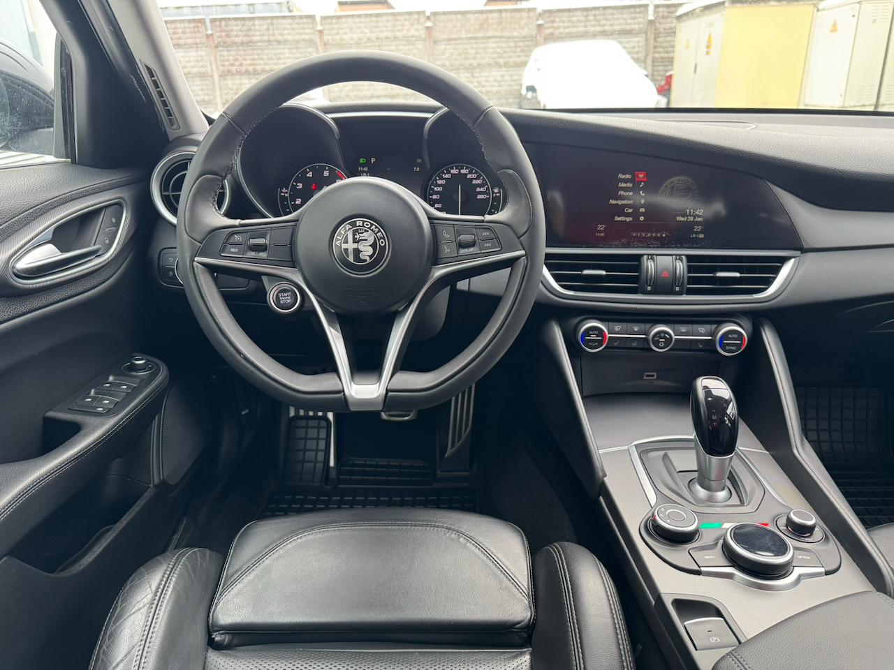 Alfa Romeo Giulia 2.0 Veloce Q4 280Hp, pilnpiedziņa, Hifi mūzika, R19 Quadrifoglio stila riteņi, elektriski regulējami sporta sēdekļi ar atmiņu un apsildi, apsildāma stūre, lielās 330mm Brembo bremzes, "Alfa Connect" multimediju sistēma ar Bluetooth, ksenona gaismas, parkošanās sensori un atpakaļskata kamera. Lietus un tumsas sensors, tālo gaismu asistents, aklo zonu brīdinājums. Kruiza un klimata kontroles. Auto aprīkots ar skandināvu tipa papildu motora un salona sildītāju Calix u.c.