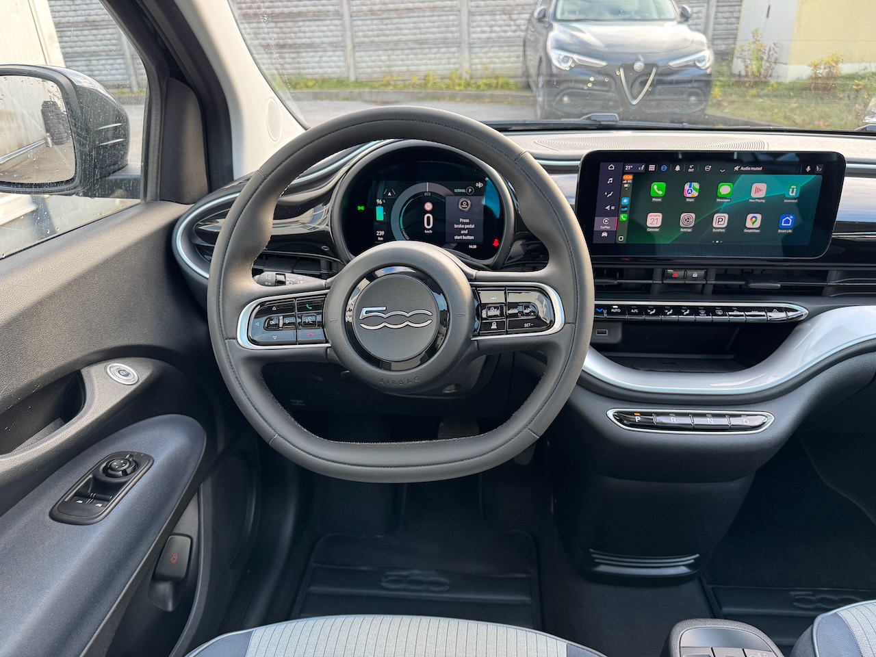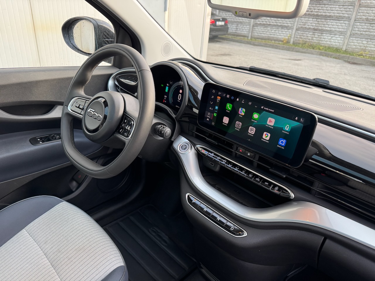 Fiat 500e Icon 87KW ELECTRIC, LED gaismas ar tālo gaismu asistentu, 360 grādu parkošanās sistēma ar atpakaļskata kameru, Carplay / Android auto, bezvadu tālruņa lādētājs, adaptīvā kruiza kontrole AAC, klimata kontrole, sēdekļu un vējstikla apsilde, 6 skaļruņu audio sistēma u.c.