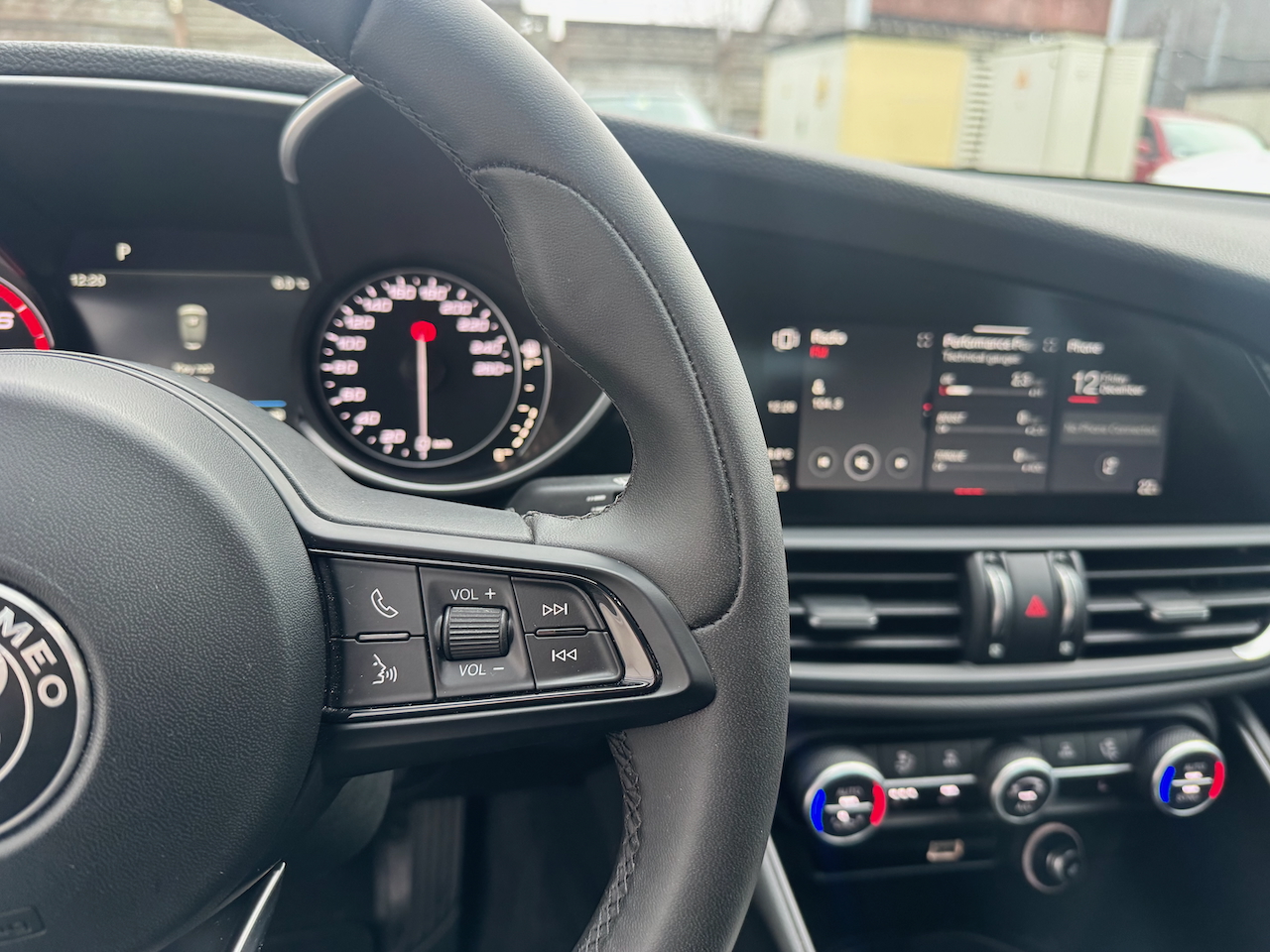 Alfa Romeo Giulia 2.0 Turbo Benzina 200HP, jaunais modelis īpašajā "Bianco Lunare" krāsā, "Business" aprīkojuma līmenis, elektriski regulējams pusādas salons ar atmiņu un apsildi, stūres apsilde, jaunās paaudzes skārienjūtīgā "Alfa Connect" multimediju sistēma ar Carplay, ksenona gaismas, adaptīvā kruiza kontrole ACC, sastrēgumā braukšana u.c.