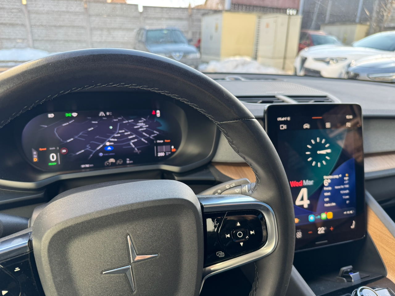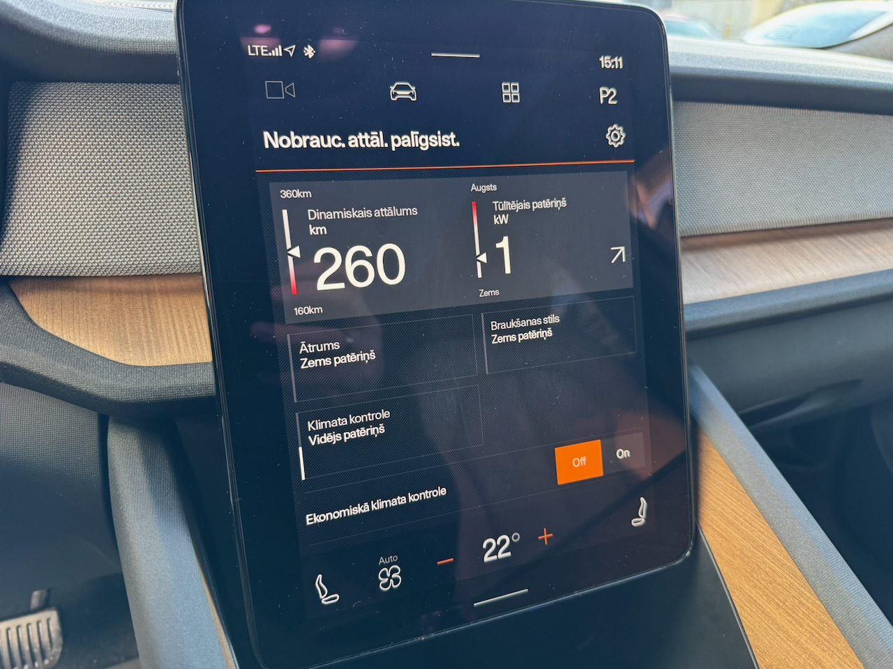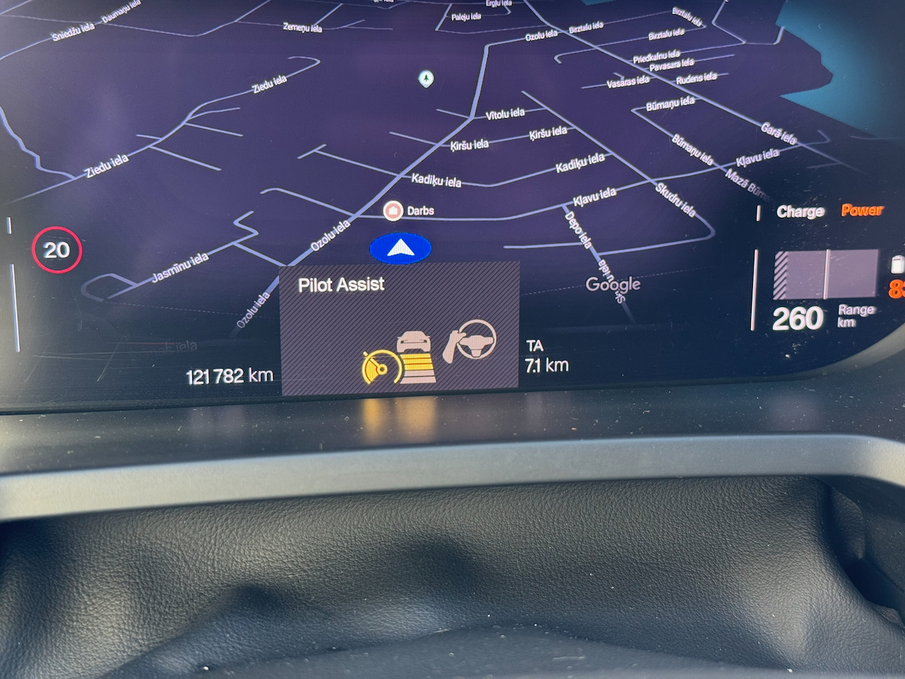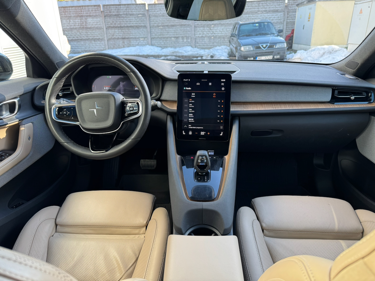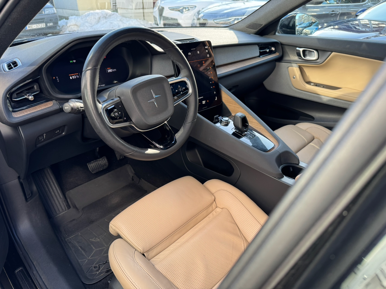 Polestar 2 maksimālā komplektācijā. Long Range (79kWh), AWD (Dual Motor) ar kopējo jaudu 300KW / 408Zs, Pilot un Plus pakas, kā arī Nappa ādas salons ar apsildi un ventilāciju.