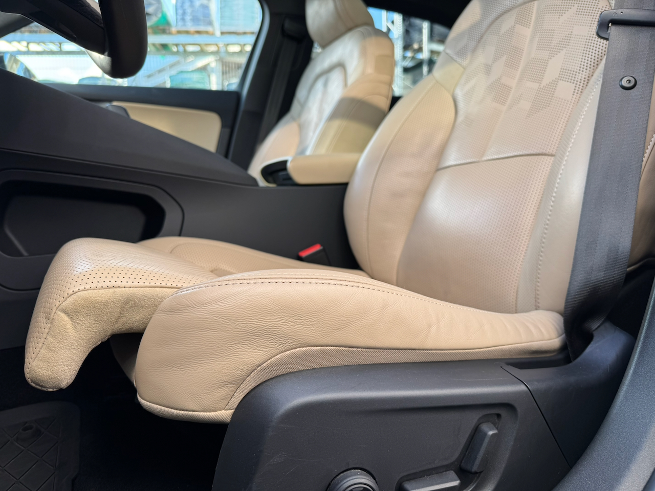 Nappa interjers - elektriski regulējams perforētas ādas salons ar ventilāciju un apsildi, gaiša koka apdare.